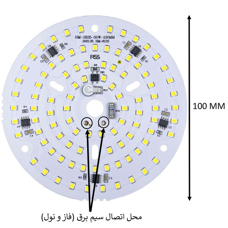 ساخت شرکت RSS مجهز به خازن آنتی شوک دارای 96 عدد ال ای دی مناسب برای تعمیر لامپ ها , پرژکتور ها و پنل های ال ای دی سوخته کارکرد با برق مستقیم شهری 220 ولت