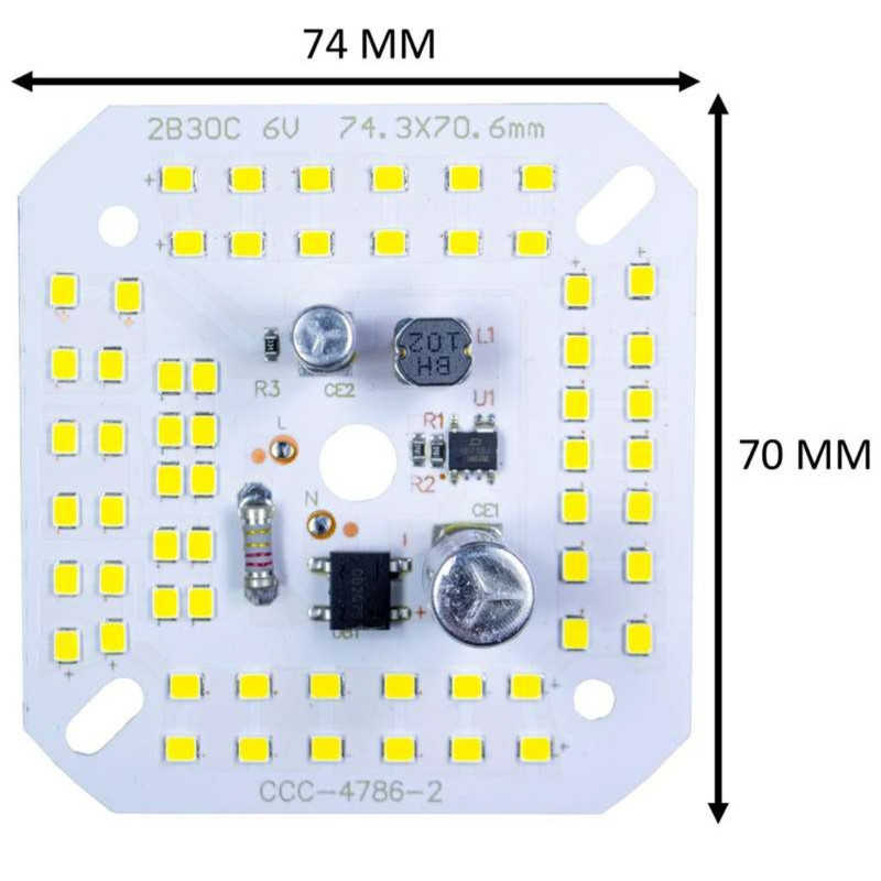 این چیپ مجهز به خازن آنتی شوک میباشد که هم از لرزش و چشمک زدن نور جلوگیری میکند و هم باعث افزایش نور چیپ میشود . این چیپ با برق مستقیم شهری 220 ولت روشن میشود و در تعمیر یا ساخت لامپ ها و پرژکتورها و پنلهای ال ای دی استفاده میشود. جهت استفاده از این چیپها پیشنهاد میشود با استفاده از خمیر سیلیکون به خنک کننده آلومینیومی (heat sink مناسب به منظور جلوگیری از افزایش دمای چیپ و کاهش عمر محصول چسبانیده شود. روی چیپ دو حرف L و N وجود دارد که فاز و نول به آنها متصل میشود.